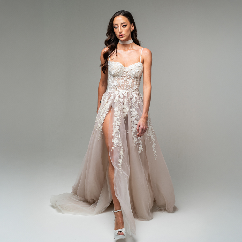 La marca surge con un propósito claro: acompañar a cada mujer en la búsqueda de un vestido único e irrepetible, que combine la perfección del calce con la delicadeza de los detalles artesanales.